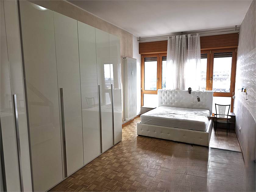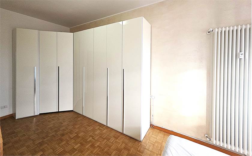 ingresso che disimpegna zona giorno, cucina e zona notte, soggiorno con finestratura a tutta larghezza, cucina abitabile completa di tutti gli elettrodomestici, disimpegno notte con armadiatura a tutta altezza, bagno con ampia doccia e angolo lavanderia, camera matrimoniale (completa di armadio a 8 ante) con finestratura a tutta larghezza.