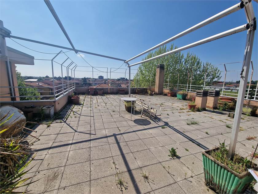 E' presente un terrazzo di 90 mq. che non è collegato direttamente con l'appartamento ed è raggiungibile tramite la scala condominiale; dispone già di una struttura in metallo e relativa copertura avvolgibile di circa 3 metri per lato; eccellente spazio fruibile per feste o gioco bimbi.