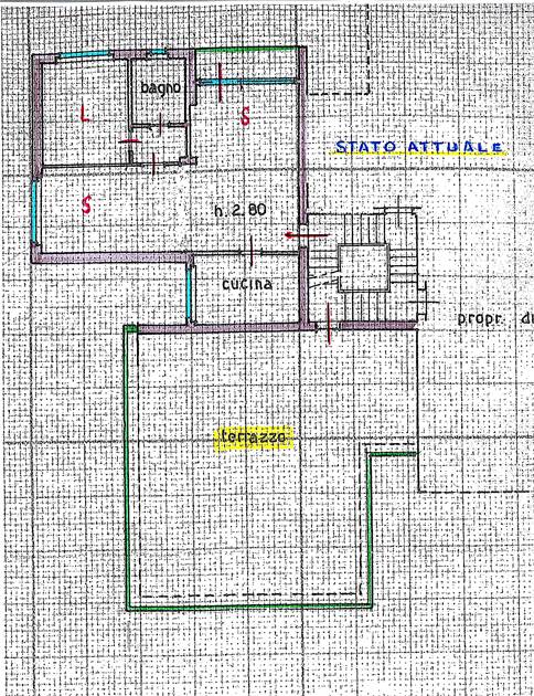 Allo stato attuale l'appartamento si presenta con una sola camera da letto, in quanto per esigenze della proprietà la seconda camera è stata accorpata al soggiorno ottenendo un bilocale con soggiorno doppio.