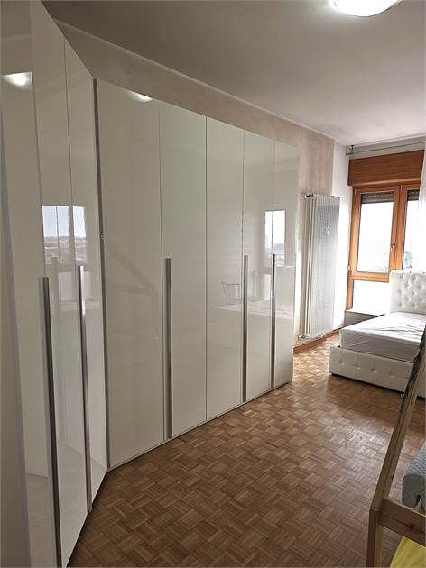 ingresso che disimpegna zona giorno, cucina e zona notte, soggiorno con finestratura a tutta larghezza, cucina abitabile completa di tutti gli elettrodomestici, disimpegno notte con armadiatura a tutta altezza, bagno con ampia doccia e angolo lavanderia, camera matrimoniale (completa di armadio a 8 ante) con finestratura a tutta larghezza.