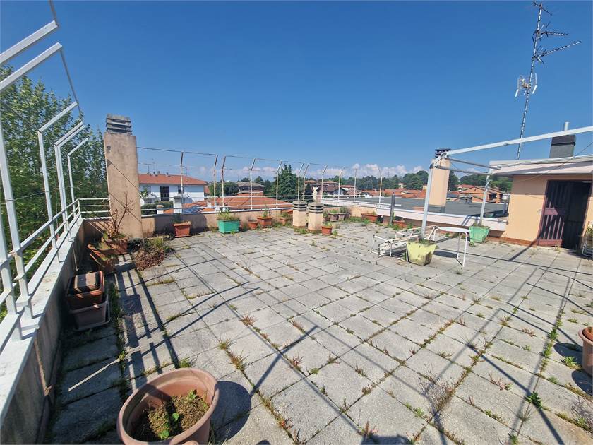 E' presente un terrazzo di 90 mq. che non è collegato direttamente con l'appartamento e raggiungibile tramite la scala condominiale; dispone già di una struttura in metallo e relativa copertura avvolgibile di circa 3 metri per lato; eccellente spazio fruibile per feste o gioco bimbi.